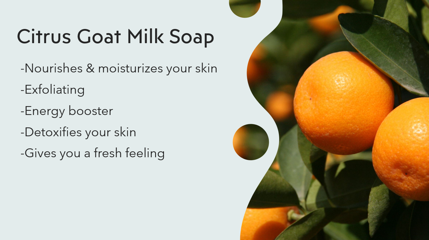 The citrus goat milk soap nourishes and moisturizes your skin. It is also a great exfoliator. You will feel a burst of energy after smelling the orange aroma. This soap will also help detoxify your skin and leave you feeling fresh.